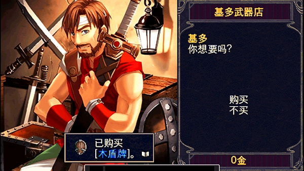 雷诺给了300G,你可以用这些钱买装备出发了——剑要200G,盾是100G。