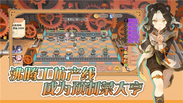 预制菜梦工坊是一款集卡牌玩法与角色养成于一体的模拟经营游戏。在游戏准备环节,玩家能够购置分别对应食材、食谱以及厨具产线的三类卡牌。进入生产流程后,食材会先被打包,接着在传送带上按顺序通过预先设置好的厨具产线,再根据食谱卡牌的具体要求被加工成预制菜,最终的成品会按照其价值自动完成售卖。游戏内还提供了众多角色供玩家挑选,每个角色都具备独特的专属特长与技能,这些能力能够加快制作速度或者提升最终的收益。