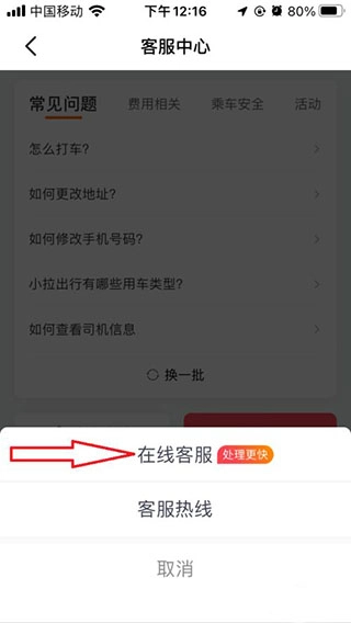 在打开的菜单选项里选择“客服中心”,这样就能进入对应的服务页面了。