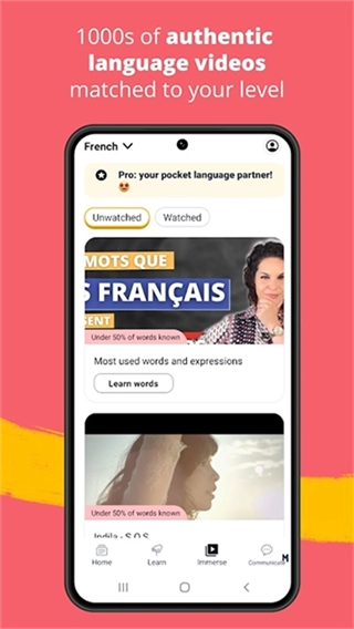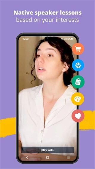包括海量由母语者录制的视频,将真实世界中的语言呈现在你面前,通过听不同的说话方式和口音,你的理解能力将自然而然提高。