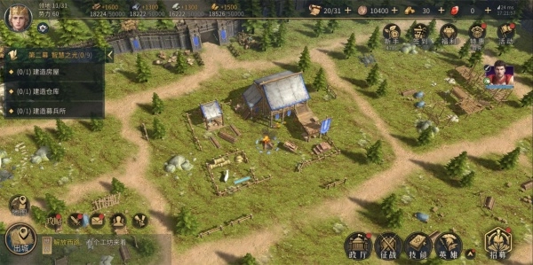 首先需要拥有农民才能开展建造活动,你可以通过在主城内升级房屋等级来增加农民的数量。