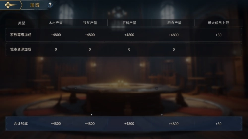 游戏开启初期,玩家能够使用宝石创建家族,加入家族后可享一定资源量加成,家族的资源加成效果与家族等级和占领的城池相关。