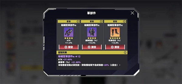 优势:攻击特定属性的敌人时能达到较高的伤害上限,像遇到全部是狙击型的敌人,就能起到事半功倍的效果,原本卡住的BOSS战斗说不定能一次就通过。