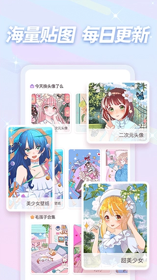- 头像与壁纸:包含情侣、闺蜜专属头像,二次元高清壁纸,还有可打造个性化风格的朋友圈素材。
