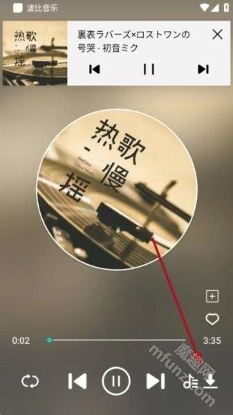 您可以挑选一首喜欢的音乐来播放,之后在屏幕右下角会有一个图标显示出来。