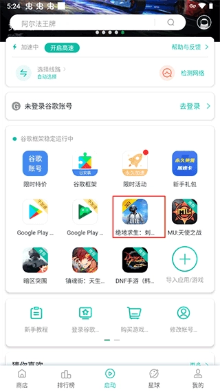 接下来要打开手机上的加速器,我自己用的是our play加速器。