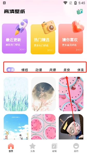 2、用户能够随时在线查看不同类别的高清壁纸与精美头像。