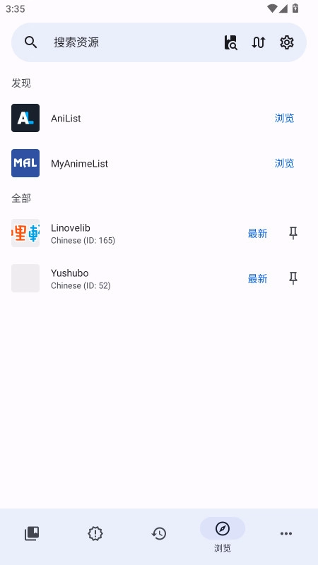 在浏览页面中会显示所有可用的书源。