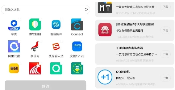 把手机里的应用或安装包导入进来,安装到虚拟机后打开就能用。另外,你也可以在这里搜索并安装一些插件。