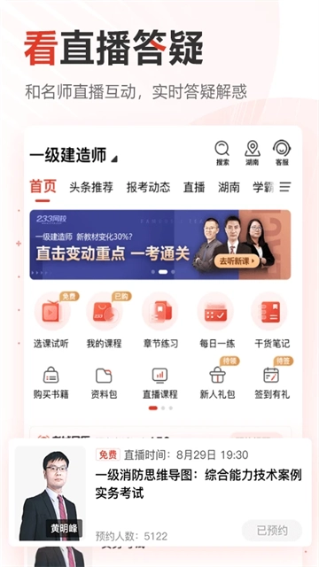 在线免费,必考知识点,考前押题,老师解析、历年真题讲解、考试须知等,手机听课兼刷题,重新定义在线教育平台的服务,互动教学,个性化辅导,资深教师带你提分拿证;