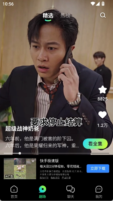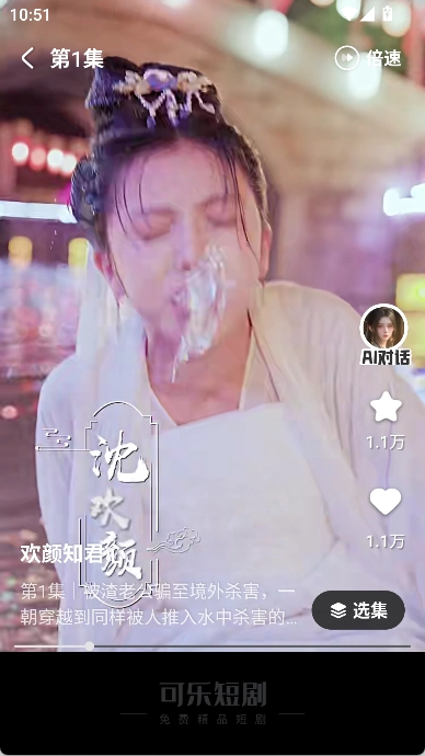 播放界面:在搜索结果里点击想要观看的短剧,就能进入播放界面,用户可以进行选集、点赞、收藏以及调整播放倍数等操作。