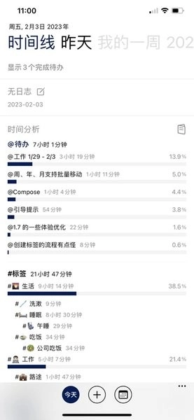 「3x3」借鉴了柳比歇夫时间统计法,能够对每日的时间开销进行记录与统计。