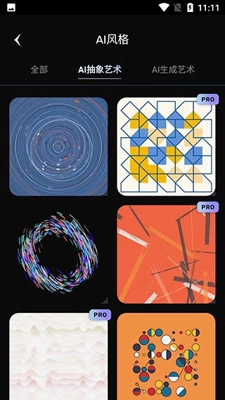 回到首页后,点击页面中央的六边形图案,即可进入AI风格抽象艺术的设置界面,在那里可以对各类图形和颜色进行自定义调整。