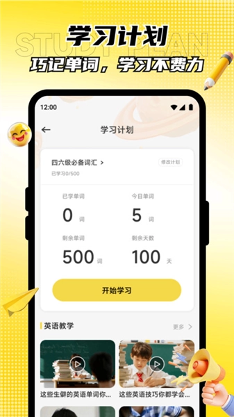 1、打开软件,进入首页,点击首页的学习计划即可。