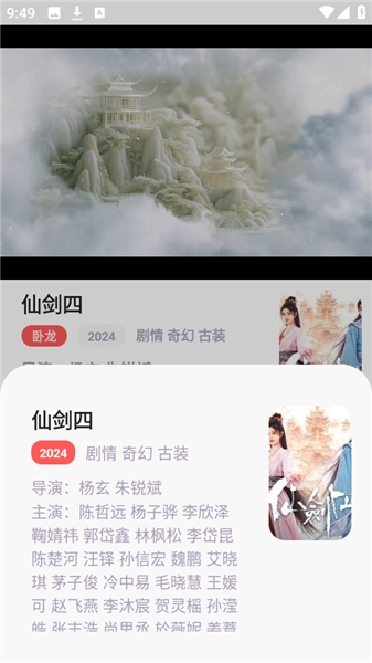 2、在资源库中挑选一部心仪的影视作品,比如“仙剑四”,点击后就能直接开始播放。