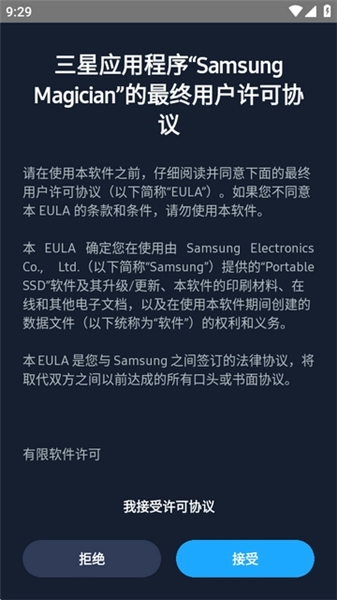2、进入软件后,接受相关的许可协议。
