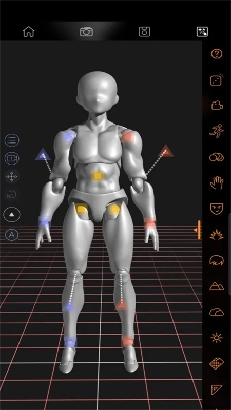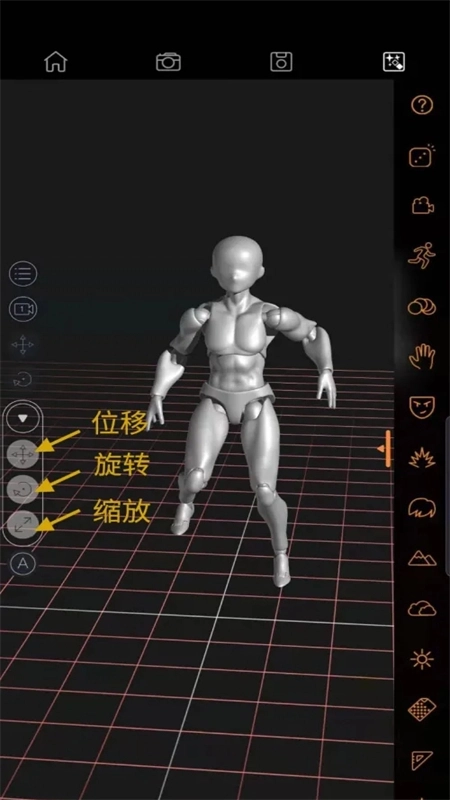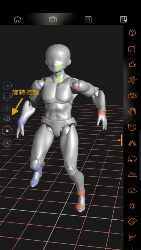 当关节控制点显现时,便能对人偶的动作进行调节;用手指在屏幕上旋转,即可调整视角角度。