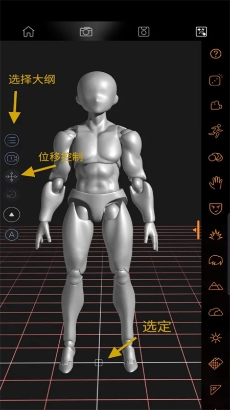 点击左侧“选择大纲”里的第三个选项“移动”,接着点击人偶下方的正方形,以此选定人偶。