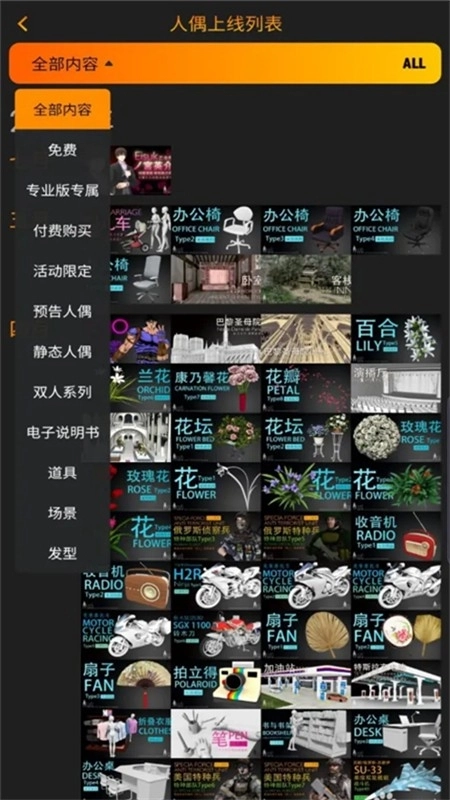 日式、美式、韩式、写实、Q版等不同绘画风格人偶;动物、昆虫、机甲、车辆、飞机;中国风场景、西方场景、古建筑、植物石头等上千款资源。