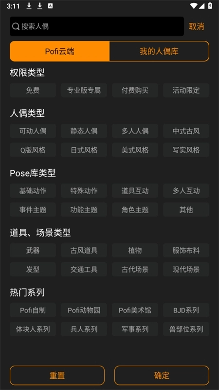 你也可以点击搜索框上方的“pofi”,再点击“全部内容”,这样也能找到对应的人偶。