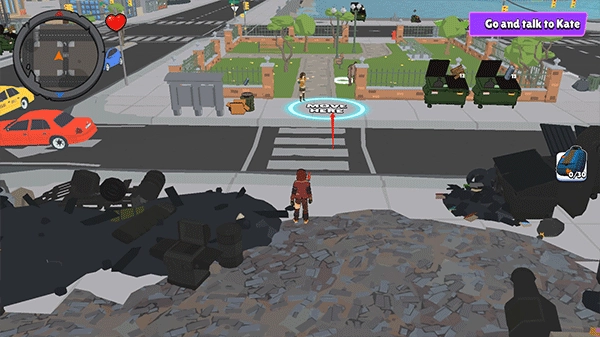 打开游戏后,用左侧的虚拟摇杆操控角色移动,右侧的按钮则用来调整视角的朝向。