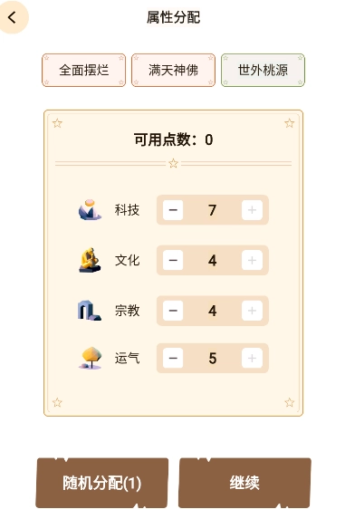 玩家能够自主把点数分配到不同特性上,以此决定文明的发展方向。