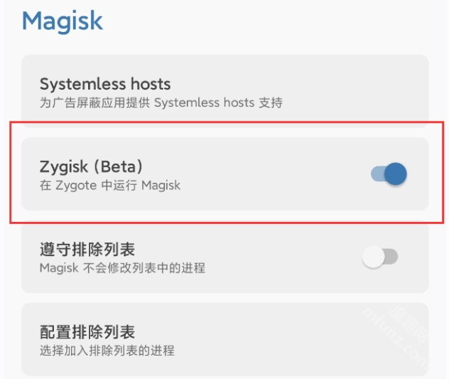 3:在第三方REC里刷入Magisk框架,同时开启Zygisk模式