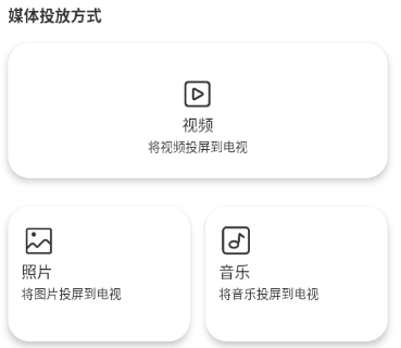 最后选择投放方式,支持视频、照片、音乐投屏到电视
