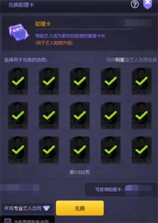 主要用途:当助理艺人不足时可临时作为助理使用,也能在“合同兑换”功能里兑换为助力卡。