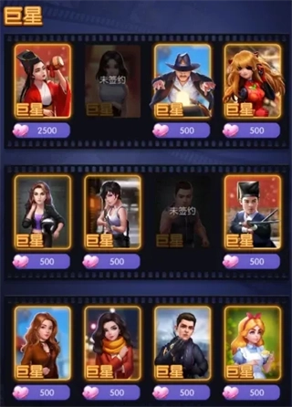 巨星艺人属于可重点培养的核心类型艺人,具备3个擅长剧本与5个擅长角色,其自身属性值也优于其他类型艺人。此外,只有巨星、超巨这两类艺人能够进行升星操作,并且在拍摄巨星类型所擅长的片种时,还能在首映结算环节提升票房收益。