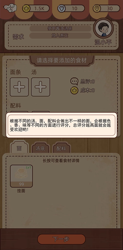 利用获得的奖励,升级厨房设备,提升制作效率与面食品质。