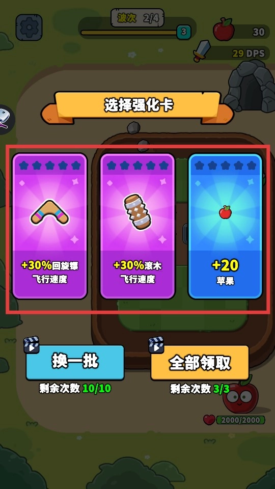 战斗阶段结束后,可挑选强化卡来提升自身战力,以便继续应对后续的波次与关卡挑战。