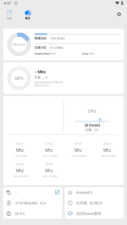 这部分工作差不多占了Scene5首个公测版一半的开发时长。最明显的变化是,新增了基础模式与ADB模式,就算是没有ROOT权限的用户,如今也能使用一些实用的小功能,像帧率统计、进程管理、应用管理以及性能监视器。另外,采用全新底层架构的Scene5,在运行时不会再频繁弹出已获取Root权限的提示了。
