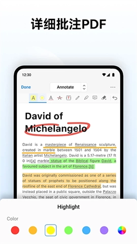 批注功能同样丰富多样,不仅涵盖高亮、下划线、删除线、画笔涂抹等基础操作,还配备了荧光笔、添加形状等实用工具。无论是制作学习笔记还是审阅工作文档,这些批注功能都能助力用户轻松标记重点内容。