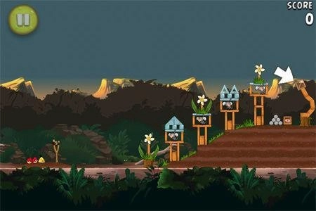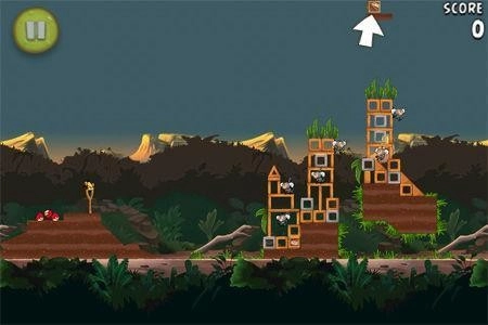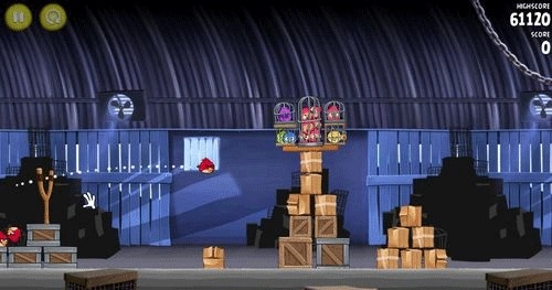第一关难度不高,你操控的是三只红色小鸟;只要调整好方向,瞄准右侧的中间支柱进行攻击就能过关。