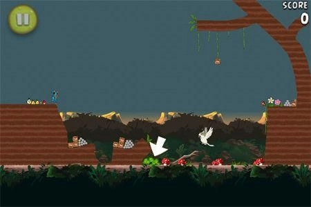 香蕉就在屏幕右下方,朝高空发射一只黄色小鸟,让它直冲敌人后方,把这根香蕉拿到手。