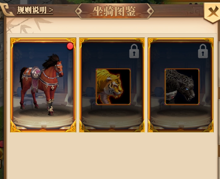 进入坐骑系统后,能够查看坐骑列表以及目前已拥有的坐骑。