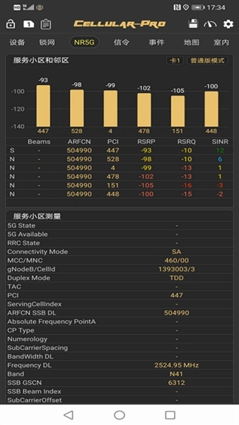 2、支持5G、LTE、GSM、WCDMA等无线测量参数的显示功能