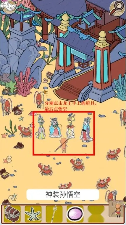 这款寻物游戏采用经典玩法,融入《西游记》的故事背景,让玩家在游戏里随处可见熟悉的西游元素。游戏设置了丰富多样的寻物关卡,每个关卡都对应不同的场景——花果山的灵秀、东海龙宫的奇幻、天宫的壮丽、地府的神秘……每一处场景都刻画得精美细腻。玩家仿佛化身齐天大圣,需要用自己的“火眼金睛”,在这些生动的场景中找出关卡指定的物品,完成一场充满西游韵味的寻物挑战。