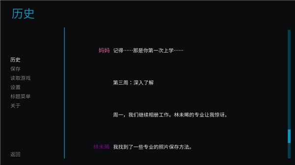 7、点击历史,这里可以查看前面的剧情内容。