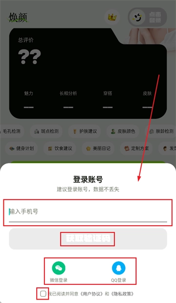 当跳出登录界面,先输入手机号,接着勾选“我已阅读并同意《用户协议》和《隐私政策》”,随后点击“获取验证码登录”就行。另外,也能够选择使用微信、QQ账号授权登录。