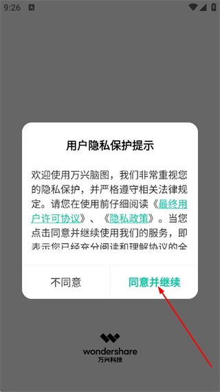 1. 在用户隐私保护提示的弹窗里,点击“同意并继续”,即可进入所选页面。