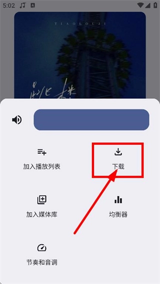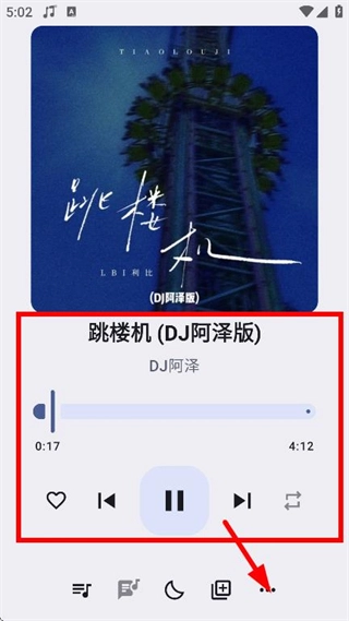 3、于歌曲播放页面,轻点底部的更多操作图标,即会弹出操作选项。