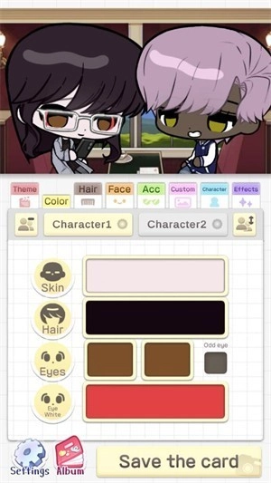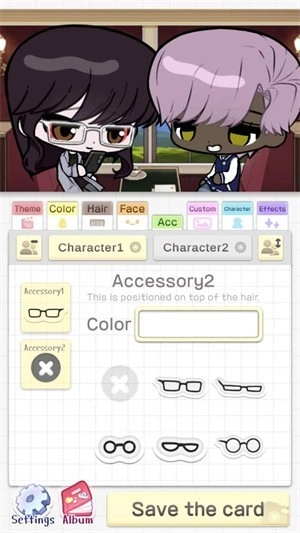 选定主题后,点击【character1】或【character2】,分别为两个角色更换装饰,打造个性化形象