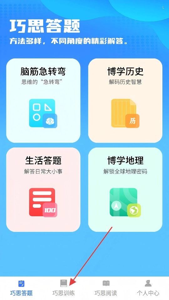 点击底部【巧思训练】选项,进入巧思训练页面。
