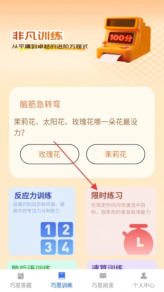 在巧思训练页面点击【限时练习】按钮,即可进入限时训练页面。