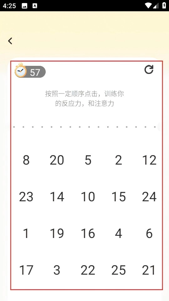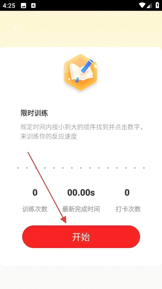 在限时训练页面点击【开始】按钮,即可进入数字点击训练界面。