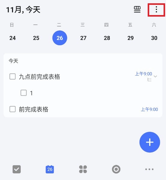 在日历界面点击右上角的 [...] 按钮,然后选择 [显示设置] 选项。