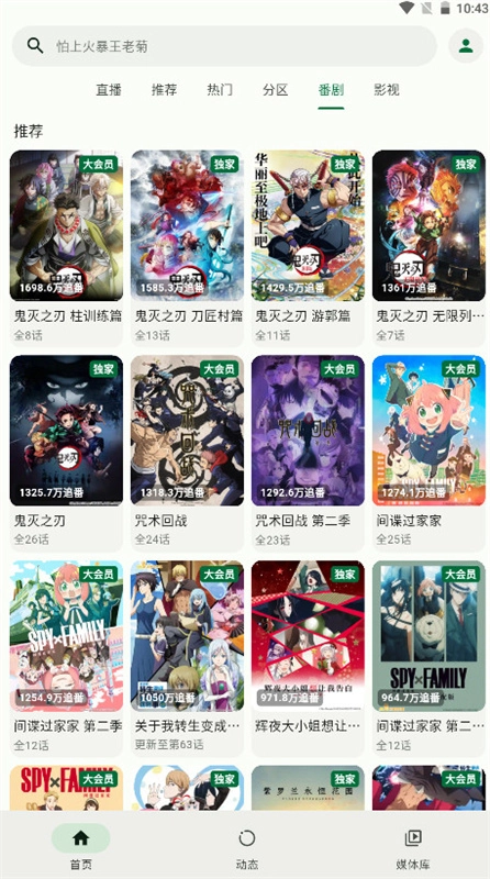 主界面仅保留“动态”“推荐”“热门”这些核心板块,去掉了“会员购”“课堂”之类的冗余功能,刷视频时沉浸感很强。