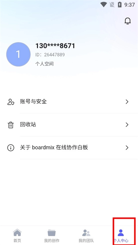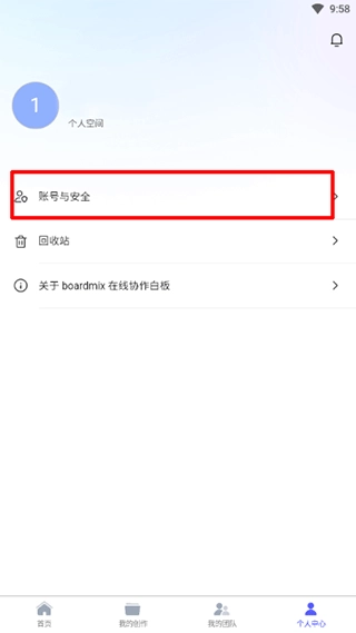 进入BoardMix的个人中心后,找到并点击“账号与安全”选项。